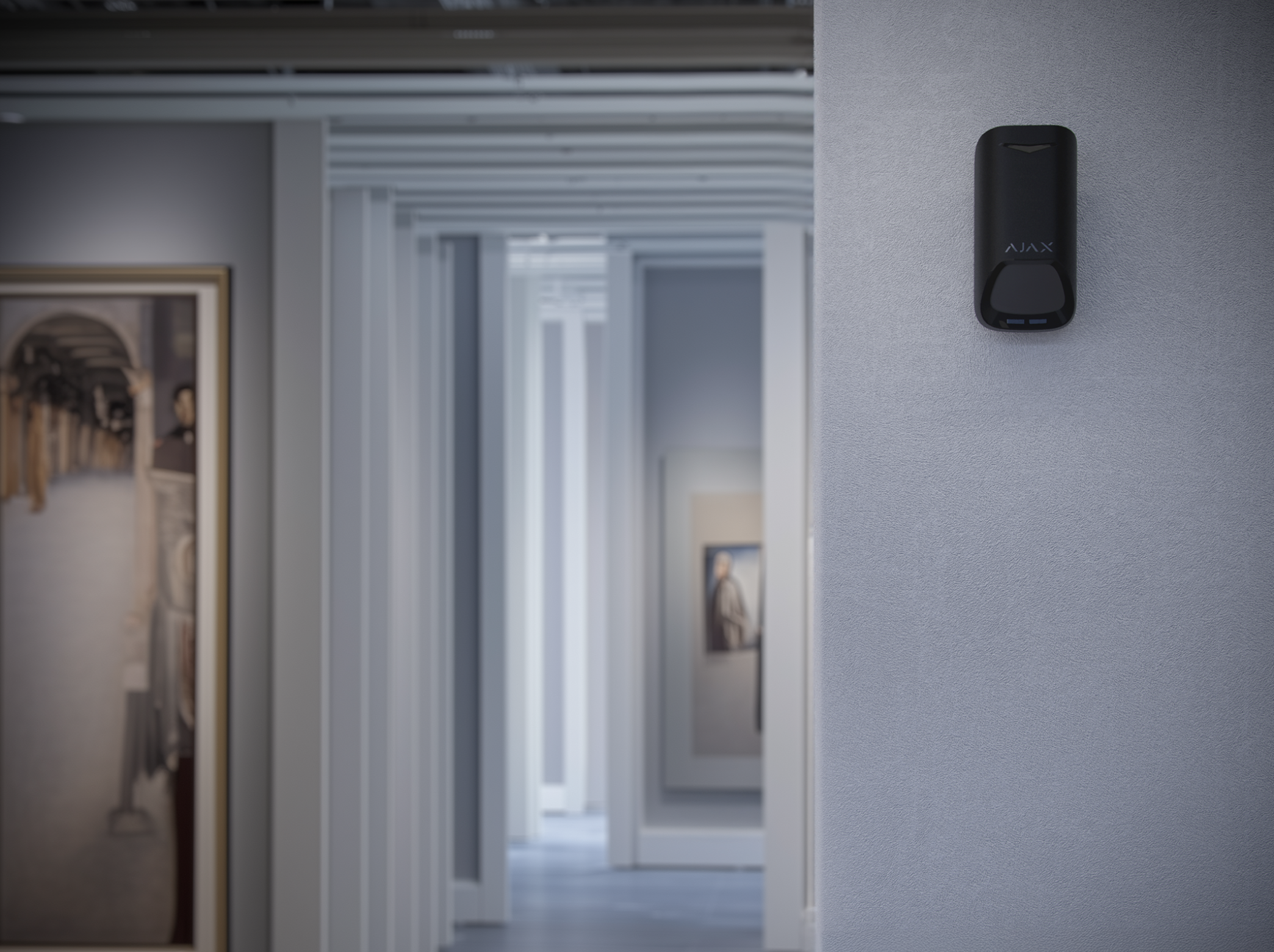 Der drahtlose „Ajax Superior MotionProtect Plus G3 Jeweller" Bewegungsmelder mit dualem PIR- und K-Band-Mikrowellensensor erkennt zuverlässig und sicher menschliche Bewegungen in Gebäuden – einschließlich langsamer Bewegungen und Kriechen. Der SmartDetect-Softwarealgorithmus filtert Scheinwerfer, Beleuchtungsgeräte und Wärmeflüsse zuverlässig heraus. Das schlichte schwarze Gehäuse passt sich perfekt an modern gestaltete Innenräume an.