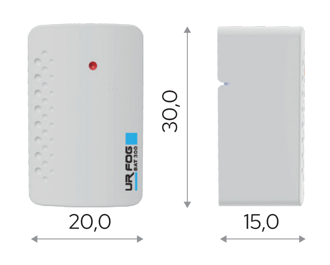Das Tankvolumen von 125 ml ermöglicht eine Gesamtverneblung von bis zu 200 m³. Dank ihres kompakten Designs und der montagefreundlichen Konstruktion ist die BAT 300 ein zuverlässiger und praktischer Bestandeil der UR Fog Ajax Ready Produktlinie.